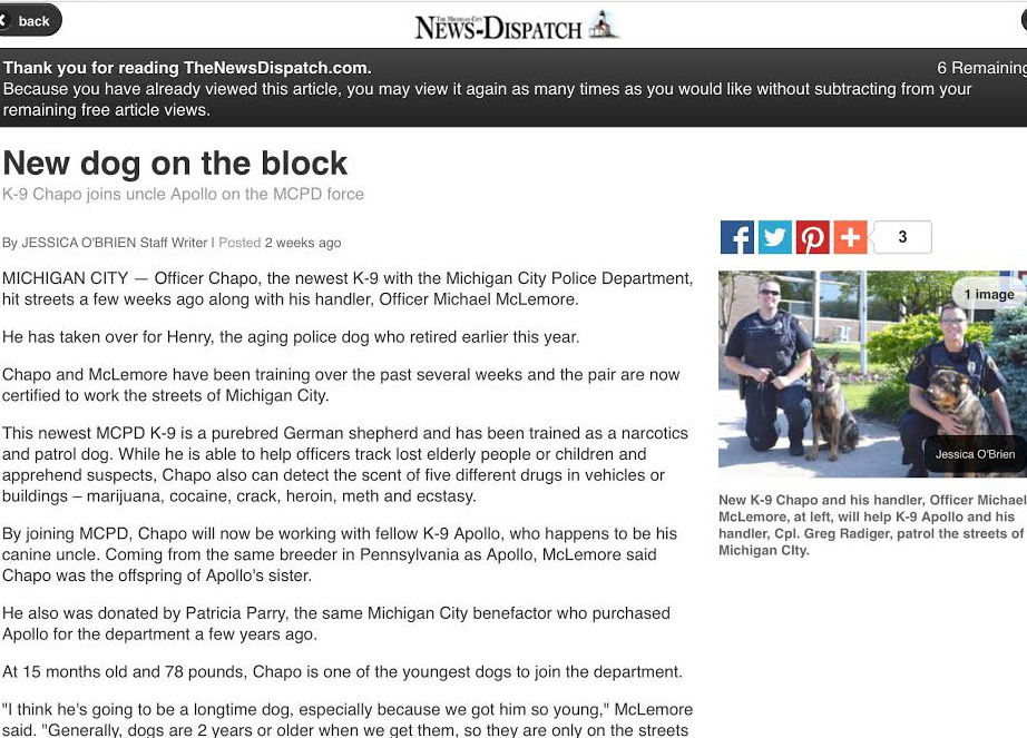 Our impact on the working dog industry has been profiled in magazines, newspapers, and also news broadcast.
